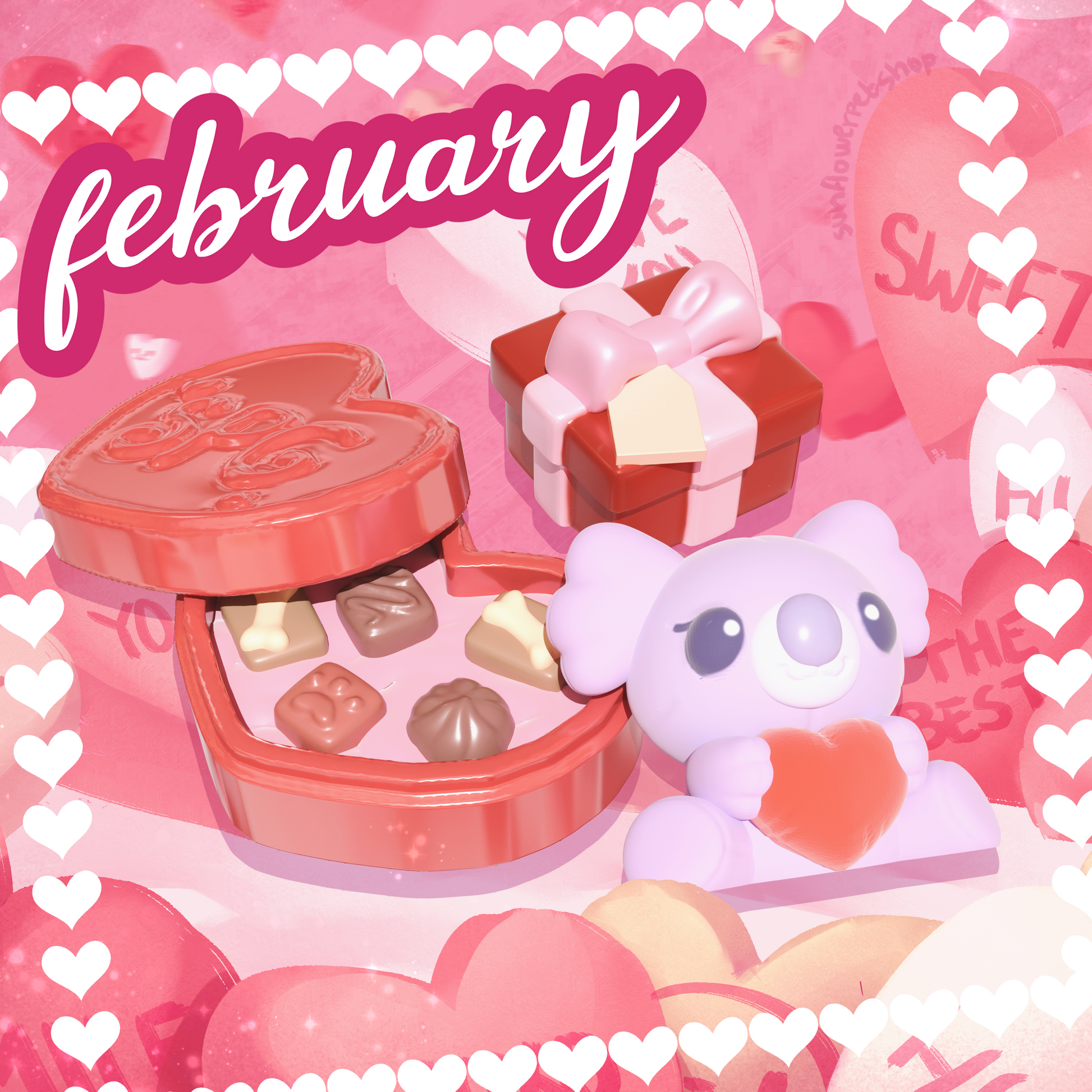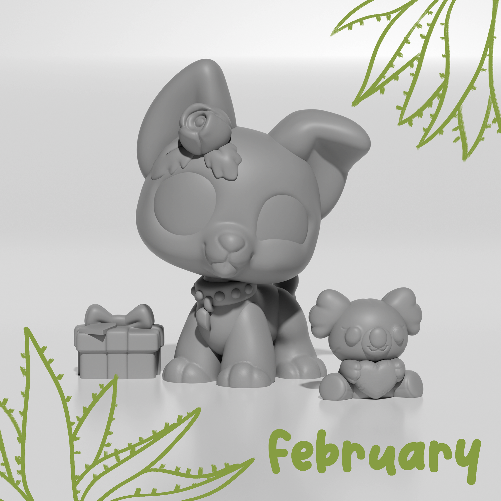 These cute white resin figures of your very own happy and kind Australian Cattle Dogs come with their own accessories ready for the season (Their koala heart plush, little gift box and detailed chocolate non-chocolate box!)