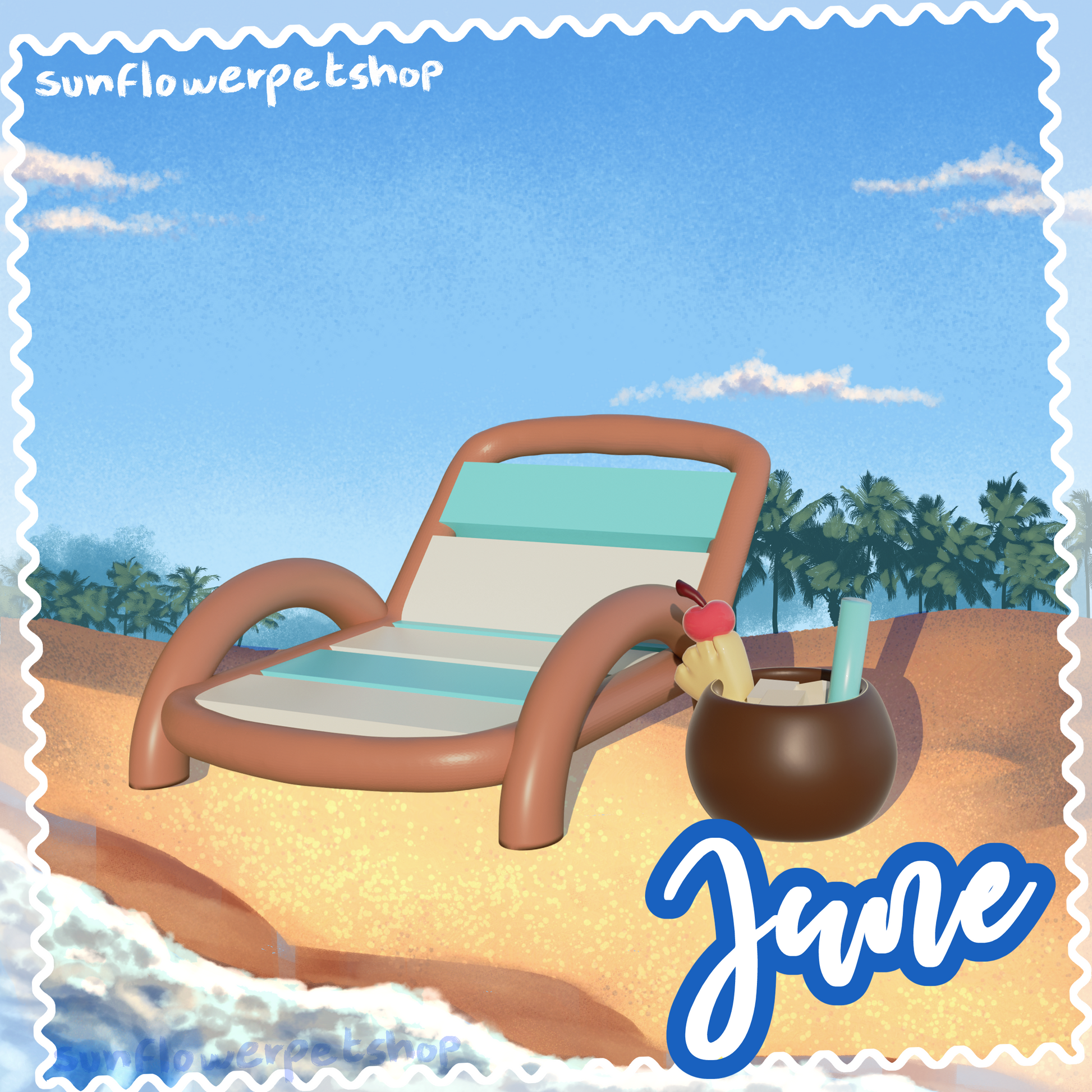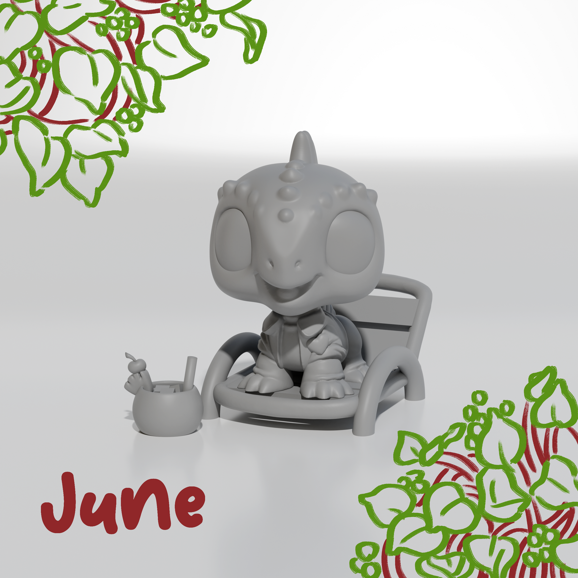 This friendly and cool resin figure of your very own proud Marine Iguana comes with their own accessories for the month of June (Their own beach chair and piña colada drink!)